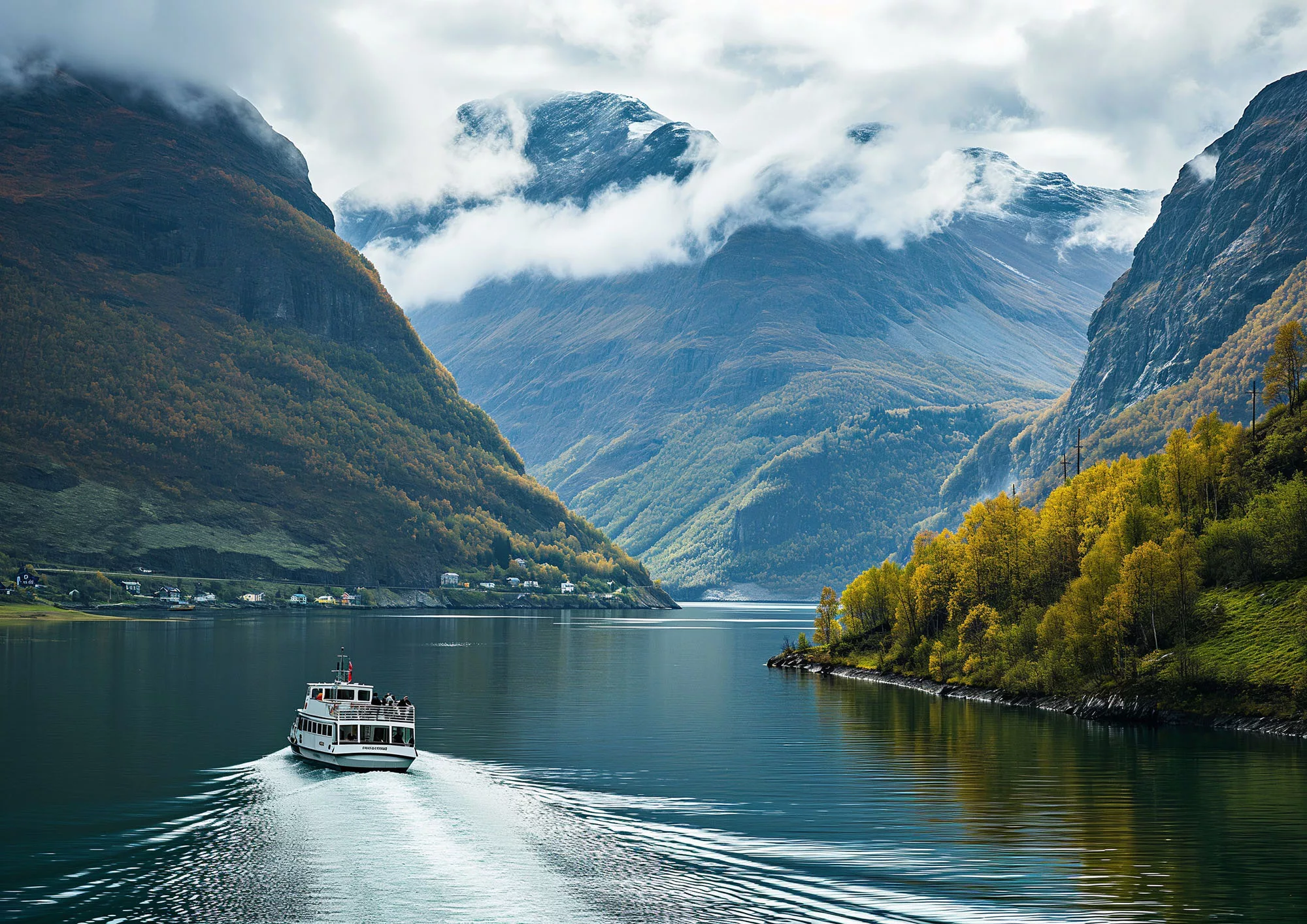Participez à une croisière inoubliable sur le Geirangerfjord, classé au patrimoine mondial de l'UNESCO, et admirez les cascades vives traversant une végétation luxuriante